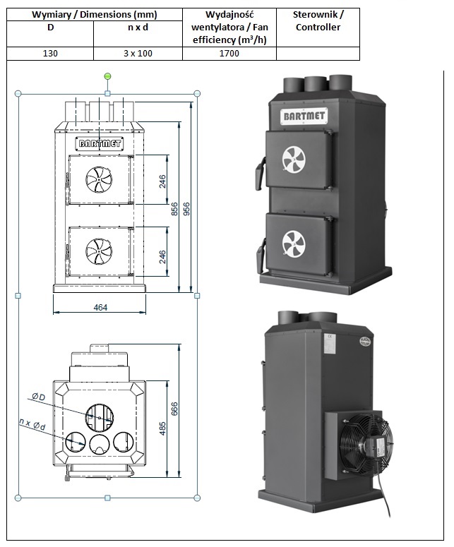 Úvod » Kotly podľa typu a paliva » Kotly na drevo / zásypové » BARTMET Teplovzdušný kotol na drevo 14kW