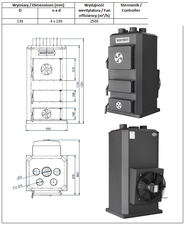 Úvod » Kotly podľa typu a paliva » Kotly na drevo / zásypové » BARTMET Teplovzdušný kotol na drevo 25kW