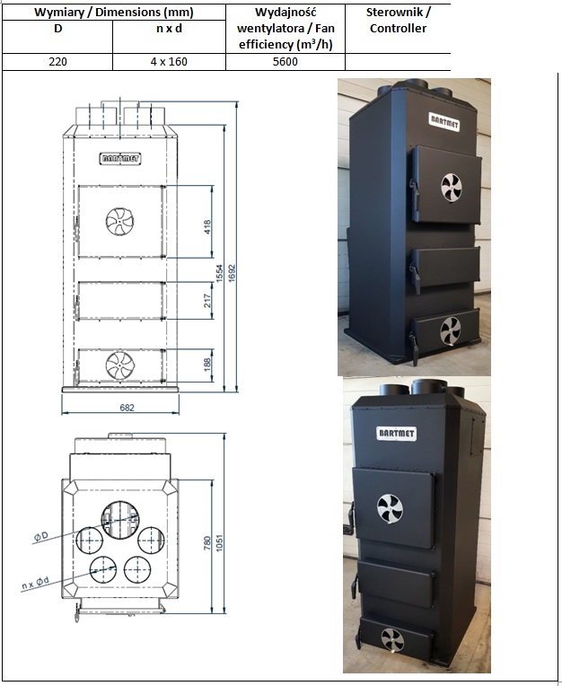 Úvod » Kotly podľa typu a paliva » Kotly na drevo / zásypové » BARTMET Teplovzdušný kotol na drevo 50kW