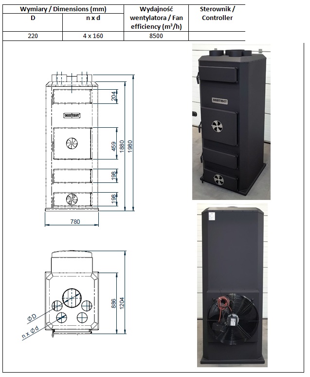 Úvod » Kotly podľa typu a paliva » Kotly na drevo / zásypové » BARTMET Teplovzdušný kotol na drevo 70kW